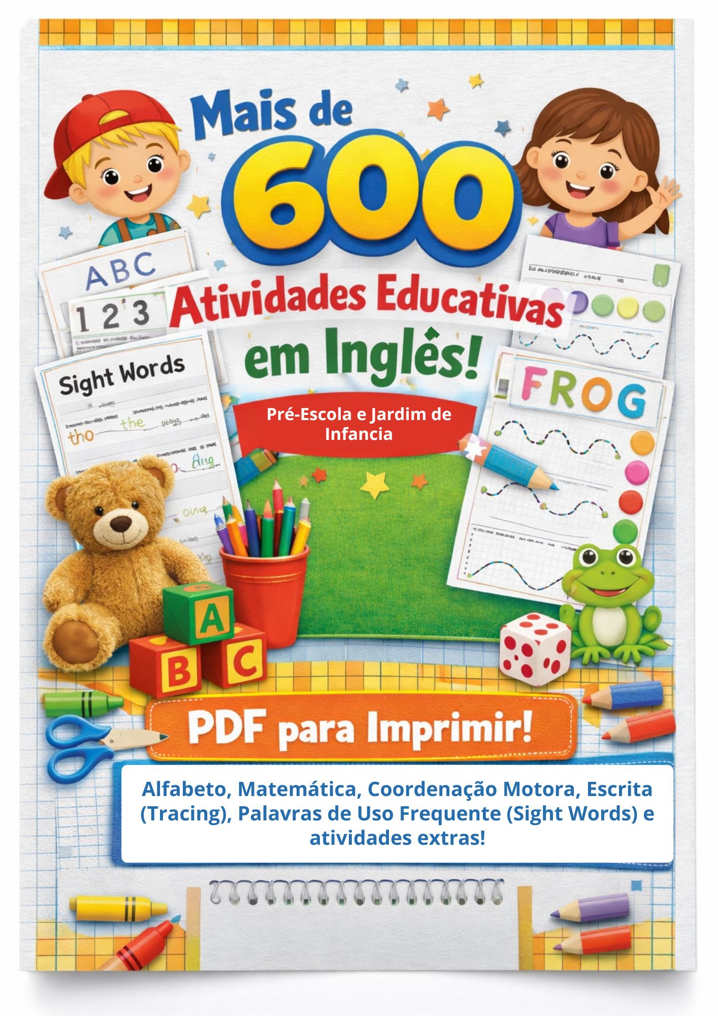 Mais de 600 atividades prontas para imprimir para aprender brincando, sem telas. Baixe agora e use hoje — ideal para casa, escola e reforço, com material 100% em inglês.