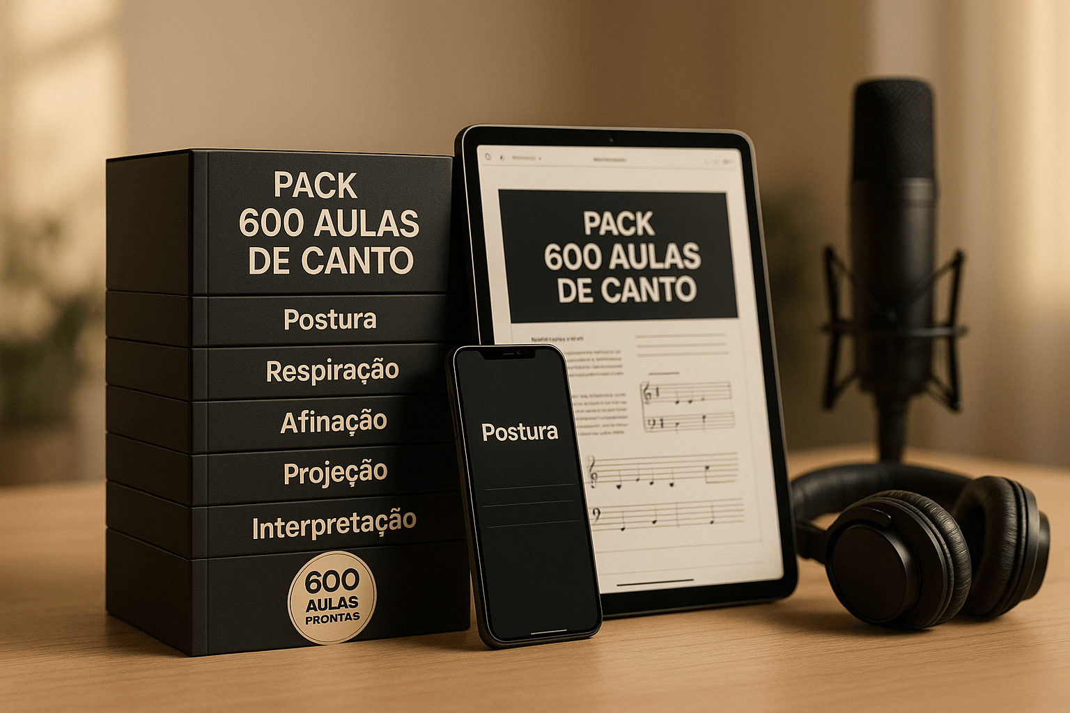 Pack completo com 600 aulas prontas de canto, organizadas do básico ao avançado para facilitar sua rotina e acelerar seus resultados.