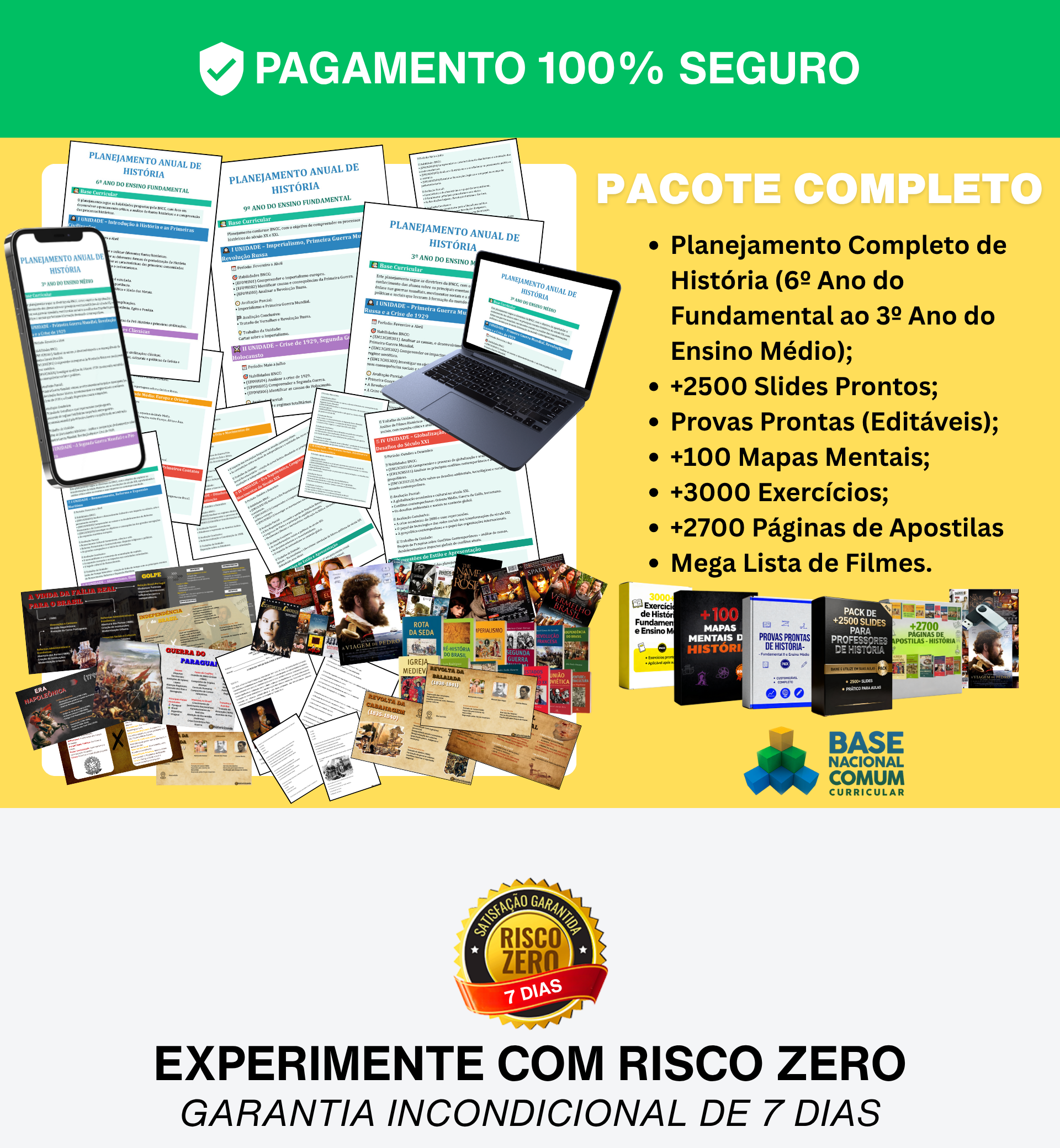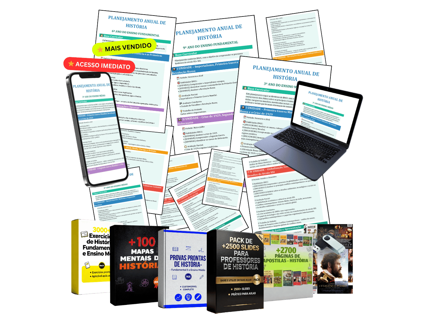 Planejamentos anuais e bimestrais prontos e organizados, alinhados à BNCC, abrangendo do 6º ano do fundamental II até o 3º ano do ensino médio, para que você economize horas de preparo.