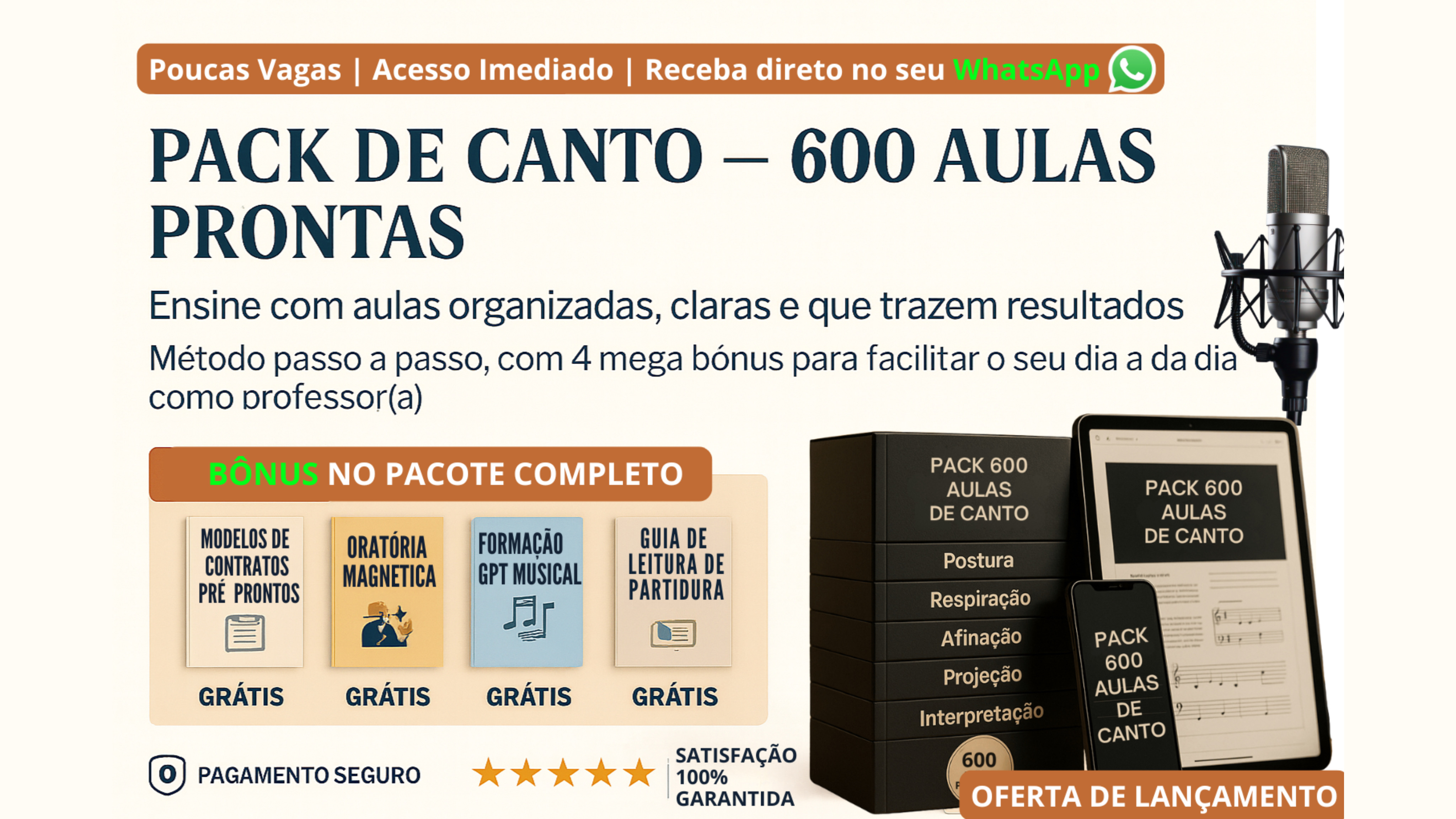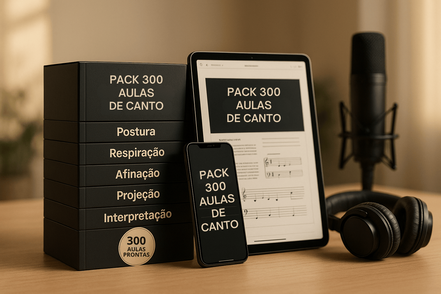 Pack completo com 300 aulas prontas de canto, organizadas do básico ao avançado para facilitar sua rotina e acelerar seus resultados.